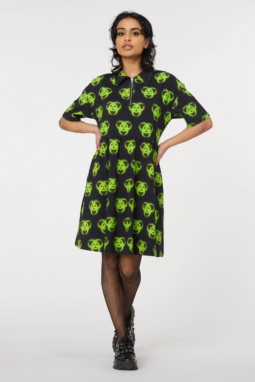 Printed Smock Dress by Dangerfield. The collar with front metal zip closure adds a modern twist, while the side pockets provide practicality without sacrificing style.
