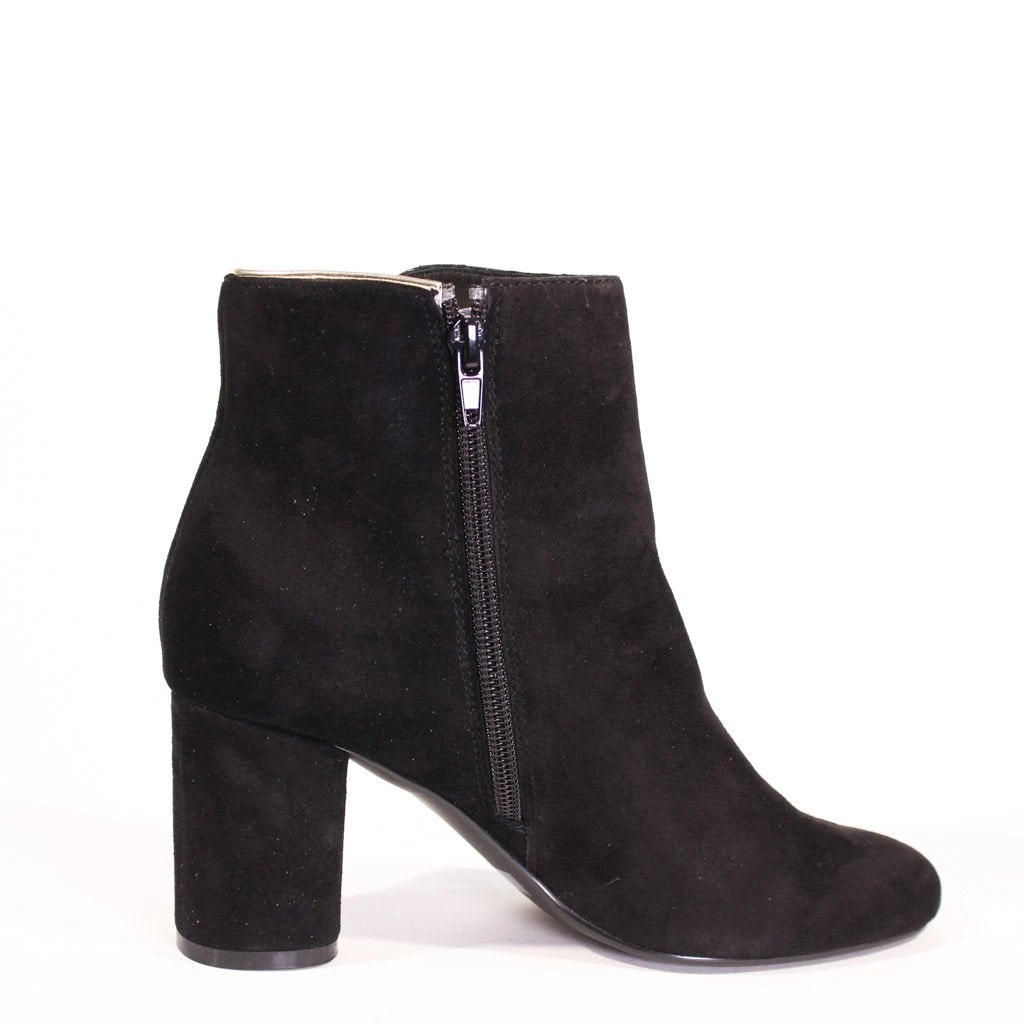 These ankle booties showcase a rich suede texture complemented by unique scalloped trim along the ankle, creating a distinct silhouette that pairs perfectly with denim or dresses.