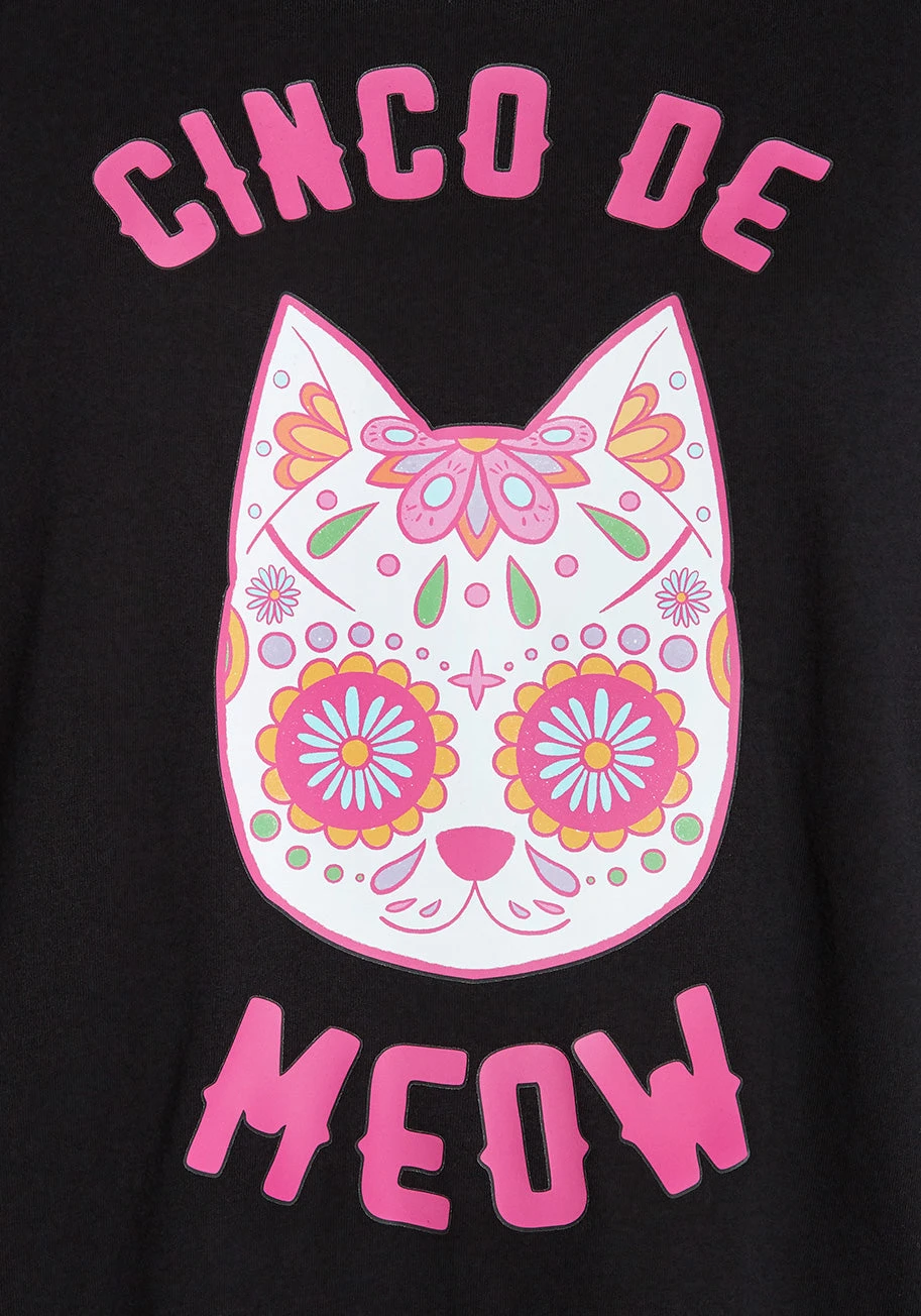 Get ready for a sweet feline-inspired sugar rush with this uniquely punny graphic tee. Designed for cat lovers with a flair for the festive, this black cotton crew neck combines classic comfort with a vibrant, eye-catching Day of the Dead aesthetic.