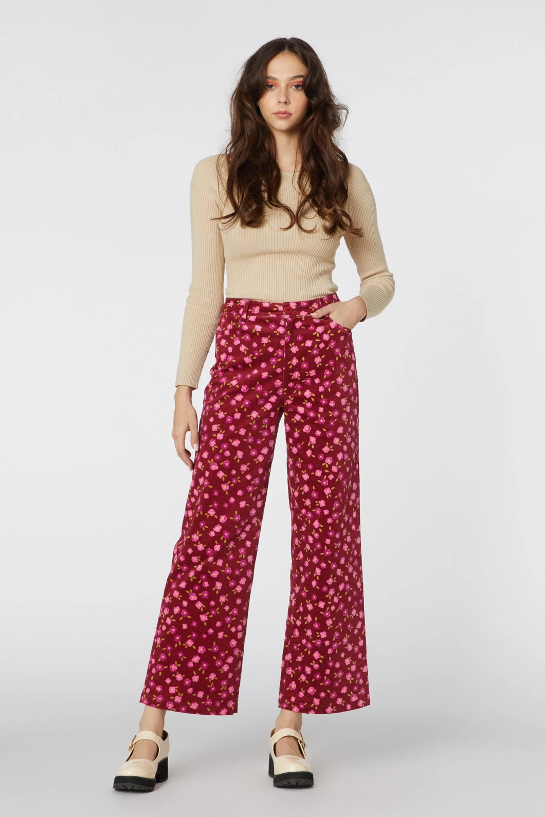 sweet floral cord pants