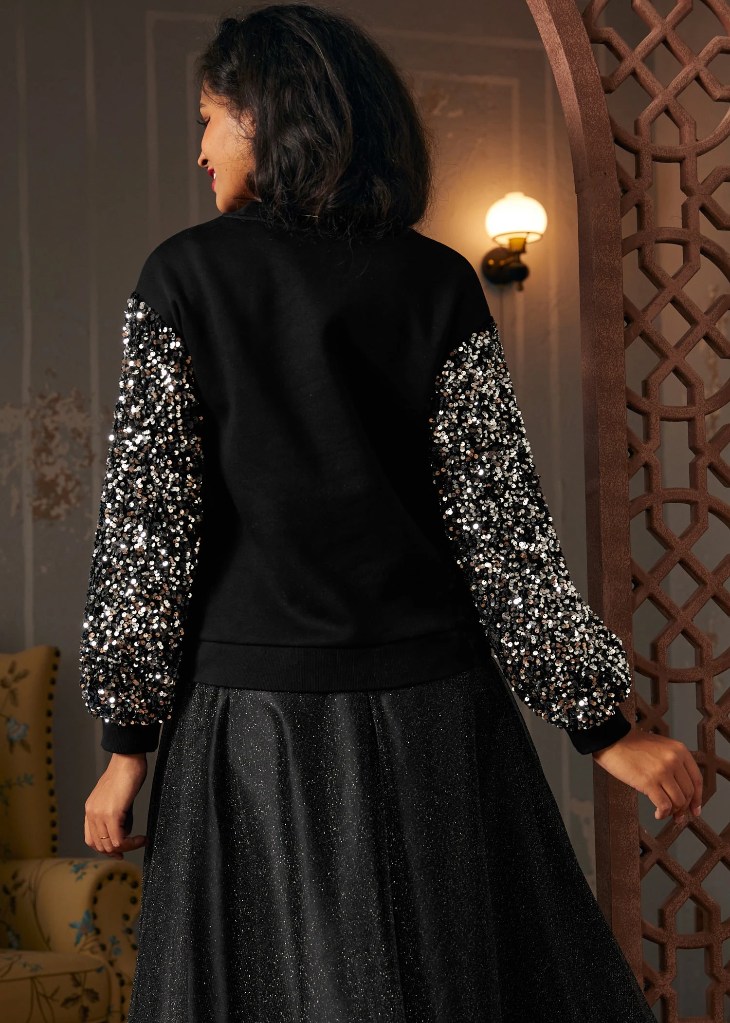 Glimmer through the winter nights in the Dressed to Impress Sequin Sweatshirt in classic noir. This sparkling top, featuring medium stretch knit fabric for comfort, adds a touch of glamour to your casual look. From our ModCloth namesake label, it’s a festive choice for adding some vintage-inspired sparkle to your everyday wardrobe.