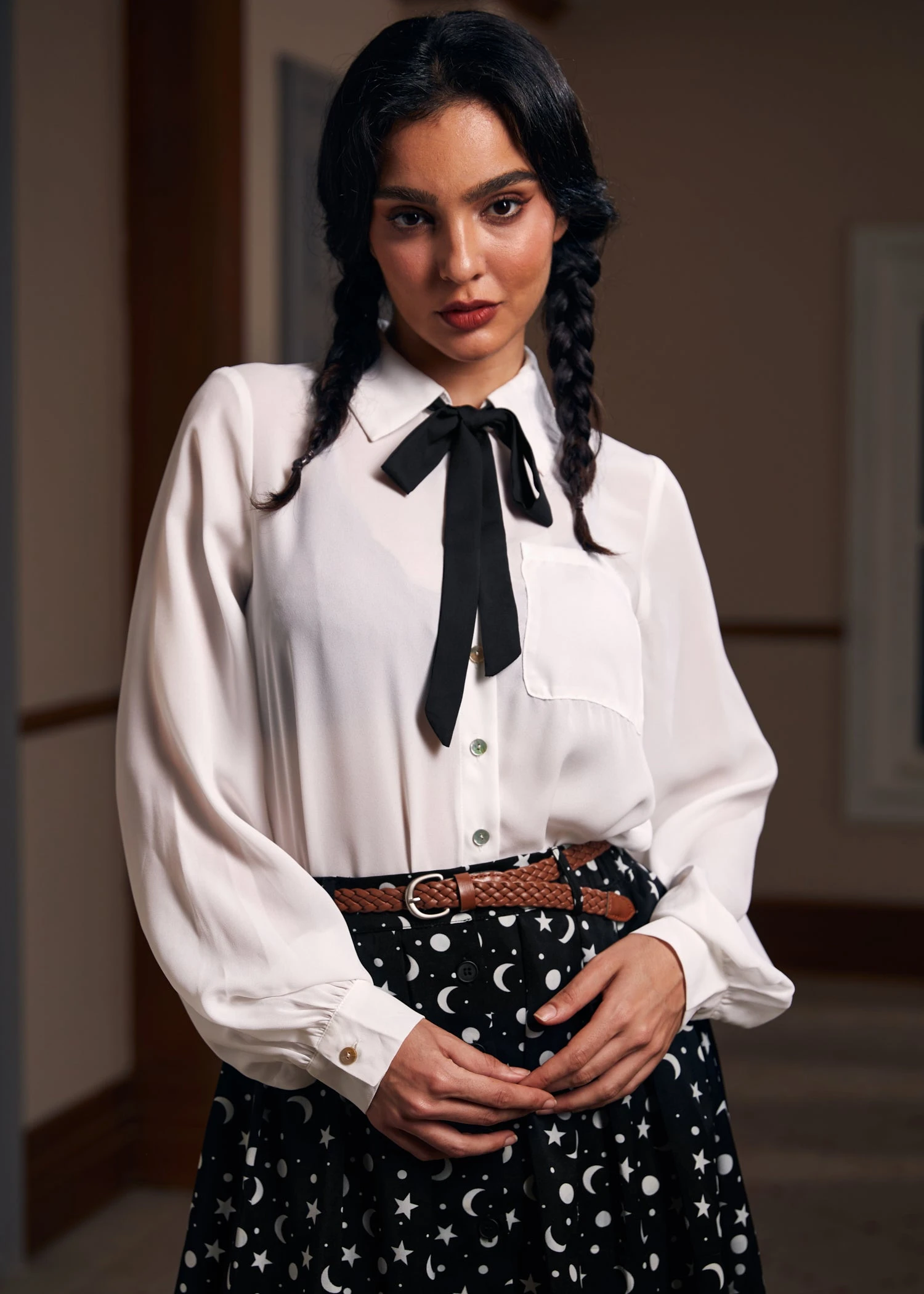 Enchanted Evening Collared Blouse in White from our ModCloth namesake label brings a breath of fresh air to brisk autumn days. Its woven fabric, adorned with functional buttons and pockets for practical charm, is a nod to fall’s fleeting beauty. Balloon sleeves endow it with a spirit of freedom and joy, inviting you to embrace fall’s every moment, whether that’s leading a seminar or laughing over brunch with friends.