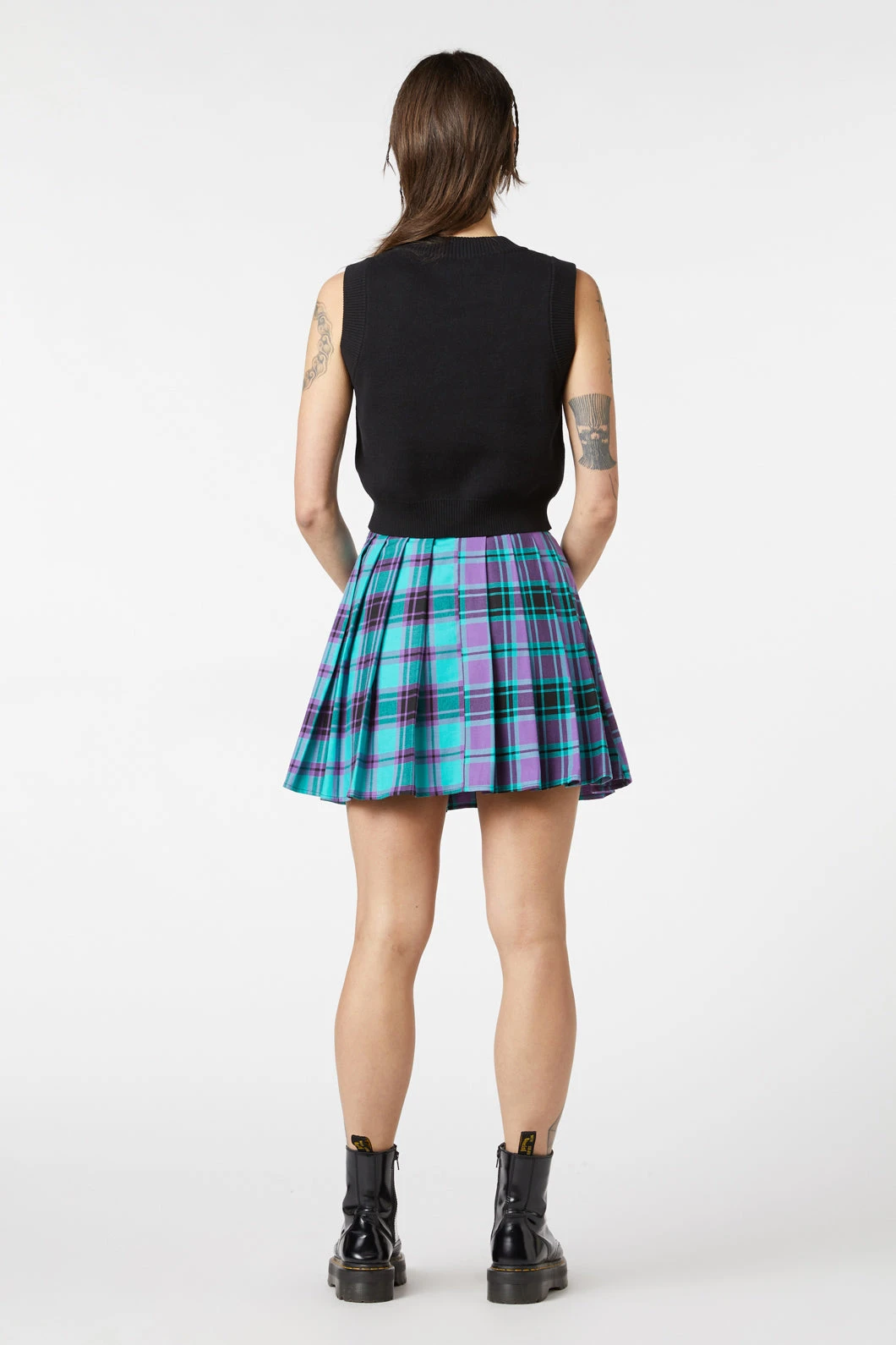 Step into the shadows with a mischievous edge in the Grinning Cat Placement Vest by Dangerfield. This gothic-inspired sleeveless knit is crafted from soft 100% cotton, offering both comfort and attitude. The round neckline and cropped length create a flattering silhouette, while the bold grinning cat design on the front adds a touch of eerie charm.Â