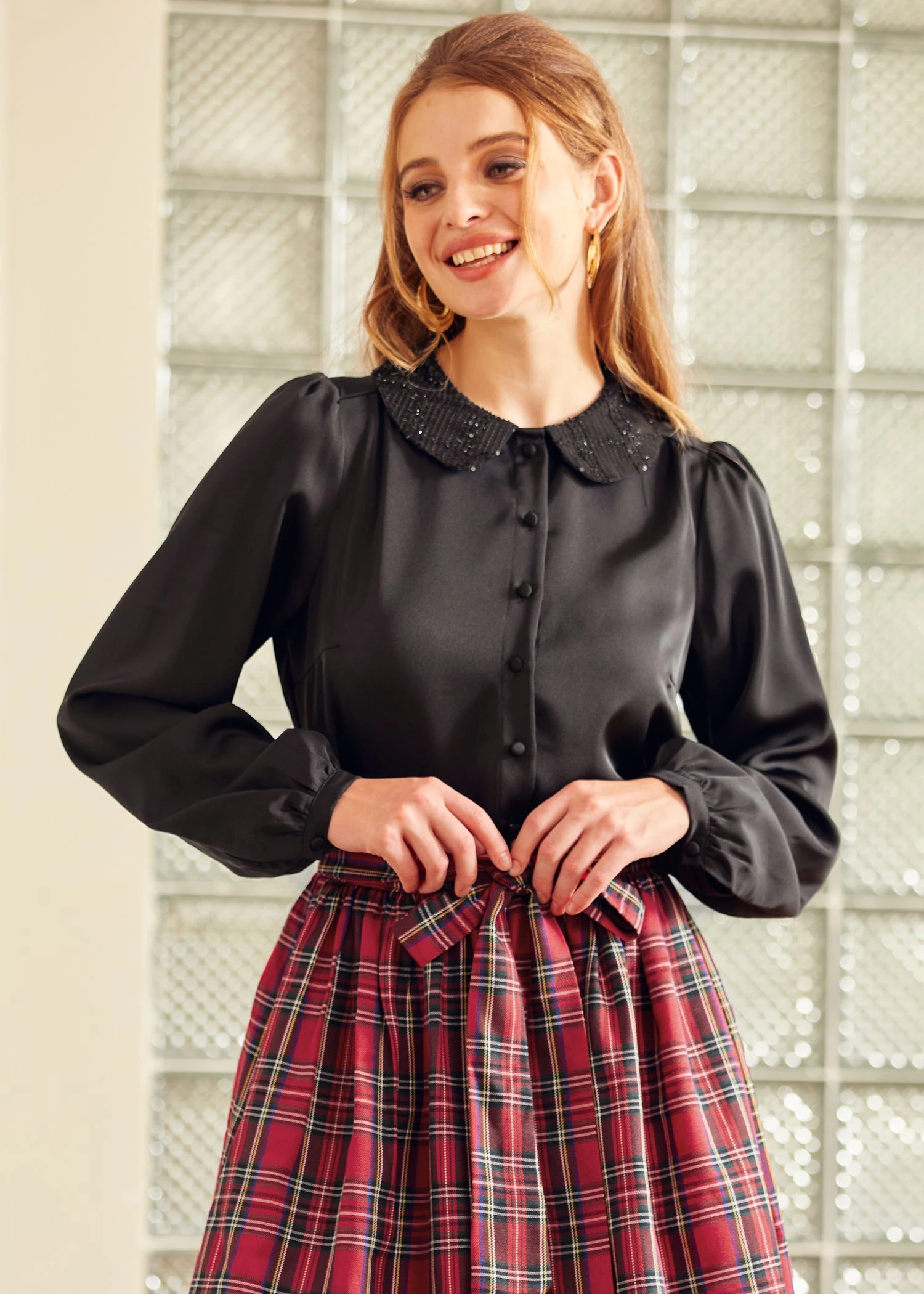 - Elegant Accents: Playful sequin collar adds a touch of glamour to the classic neckline.