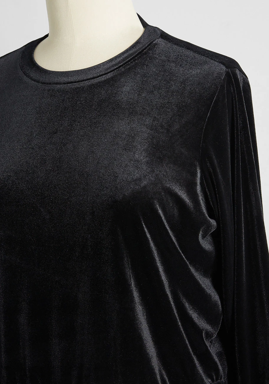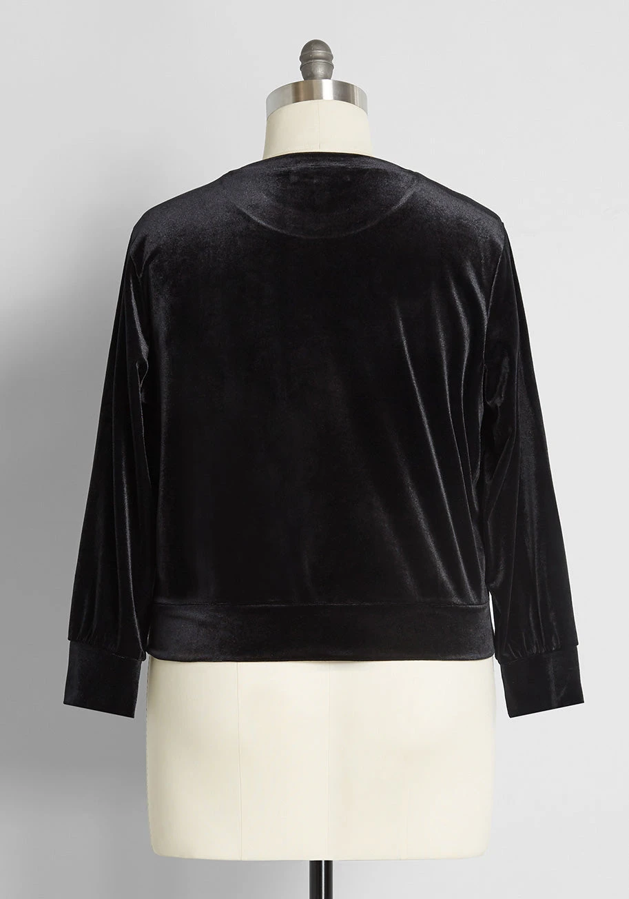Feel laidback and chic in this lustrous lounge pullover. Directly from our ModCloth namesake label, this sweatshirt is crafted from a super soft, luxe velour knit in a deep jet black hue. Designed for ultimate comfort, it transitions seamlessly from a cozy night in to an elevated look for your morning coffee run.