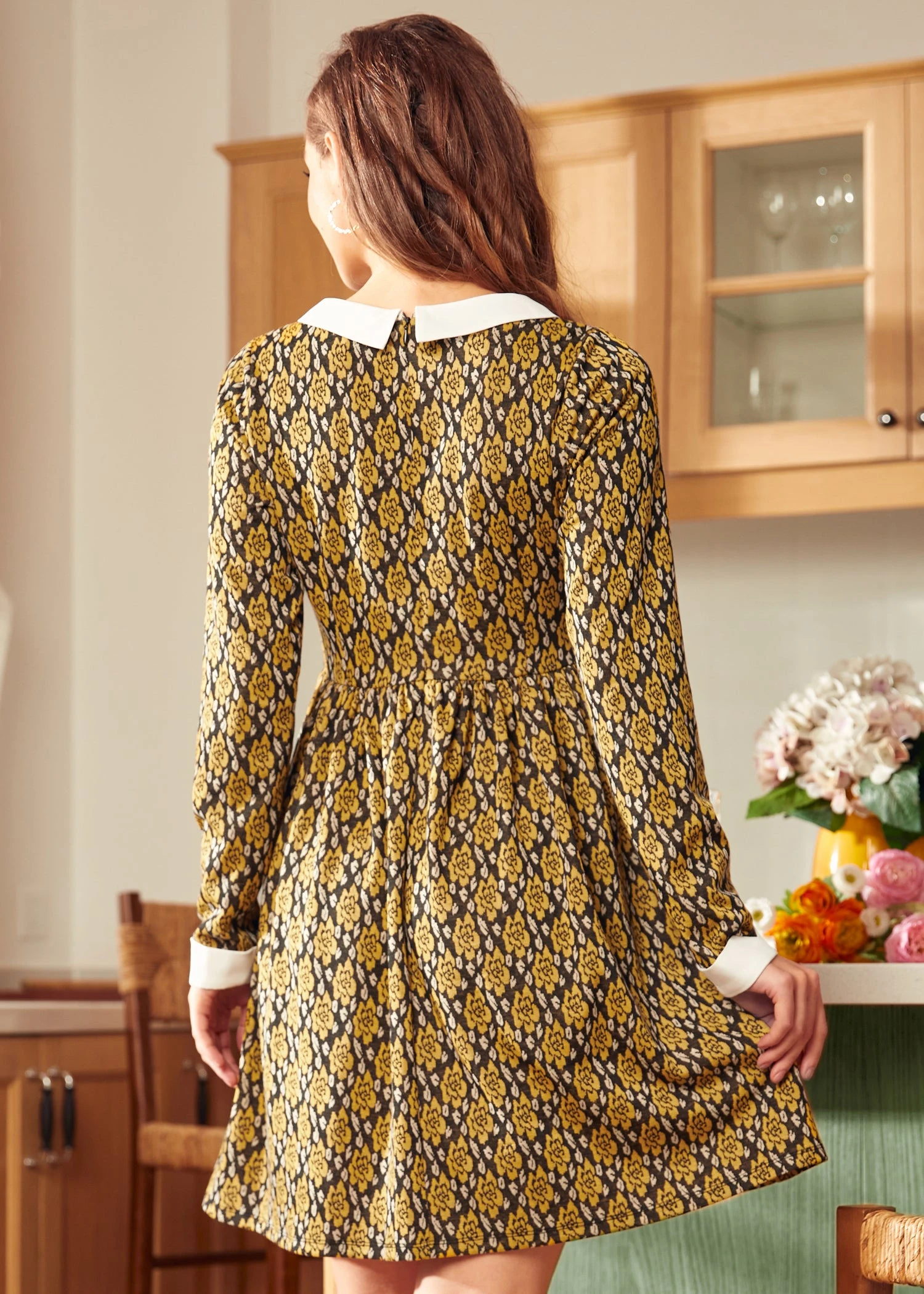 Step into a winter wonderland shimmering with style in the shimmer blend Nifty Fifties Flare Collar Dress from our ModCloth namesake label. This dress captivates with its gold multi-tone knit fabrication that catches the light with your every move. A distinctive contrast collar with an elegant tie detail, convenient pockets, and a sleek zipper closure round off the dress’s vintage-inspired charm. Its medium-stretch fabric promises a snug yet comfortable fit, making it a dazzling choice for holiday parties and festive dinners.