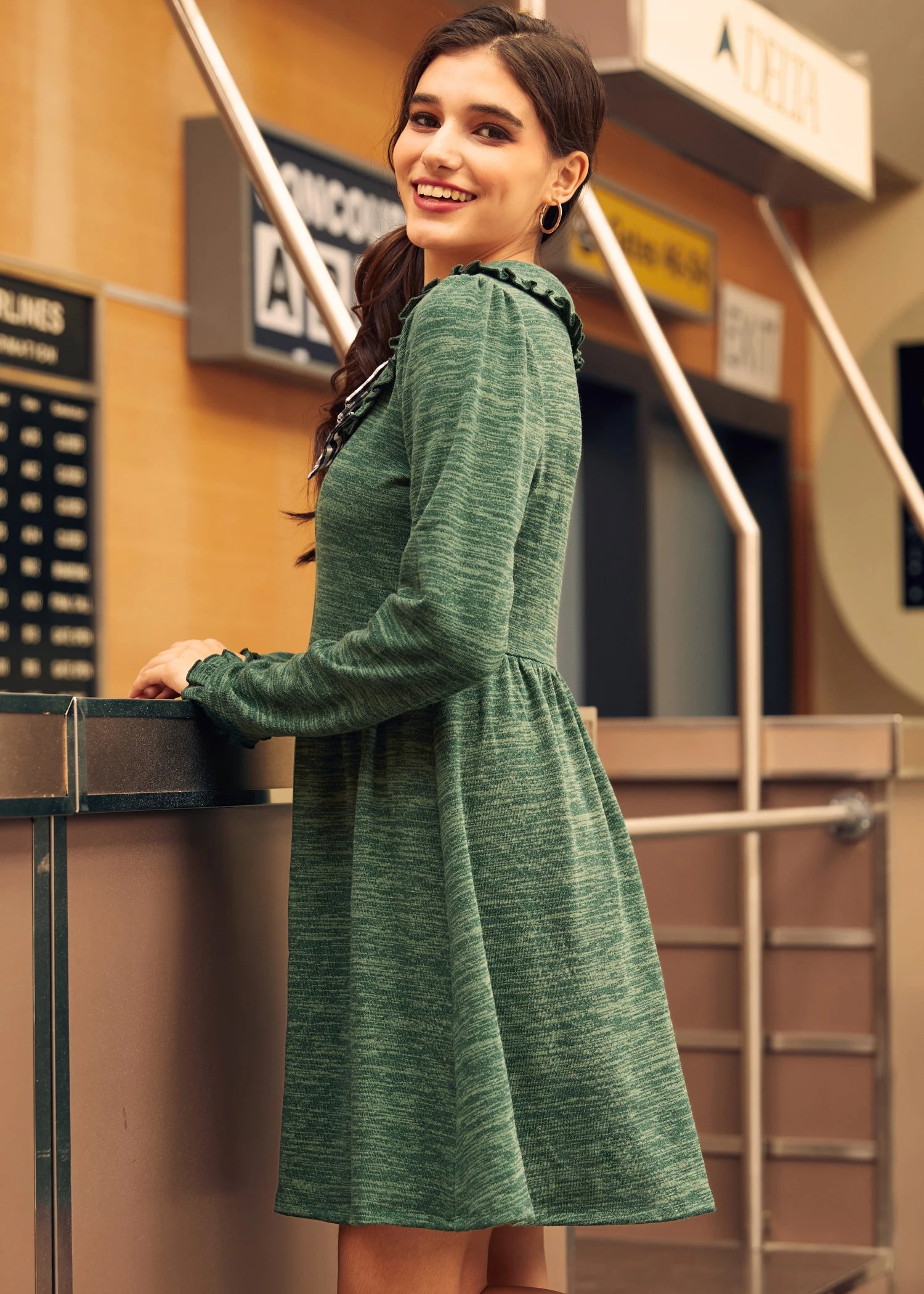 Welcome the joy of the festive season with the Touched by Time Ruffle Accent Dress in Enchanting Emerald. This knit dress, offering a medium stretch for comfort, features ruffle accents that cascade elegantly, complemented by a contrasting bow that adds a striking touch of holiday spirit. Its vibrant emerald hue captures the essence of Christmas morning and promises a look that’s both merry and chic.