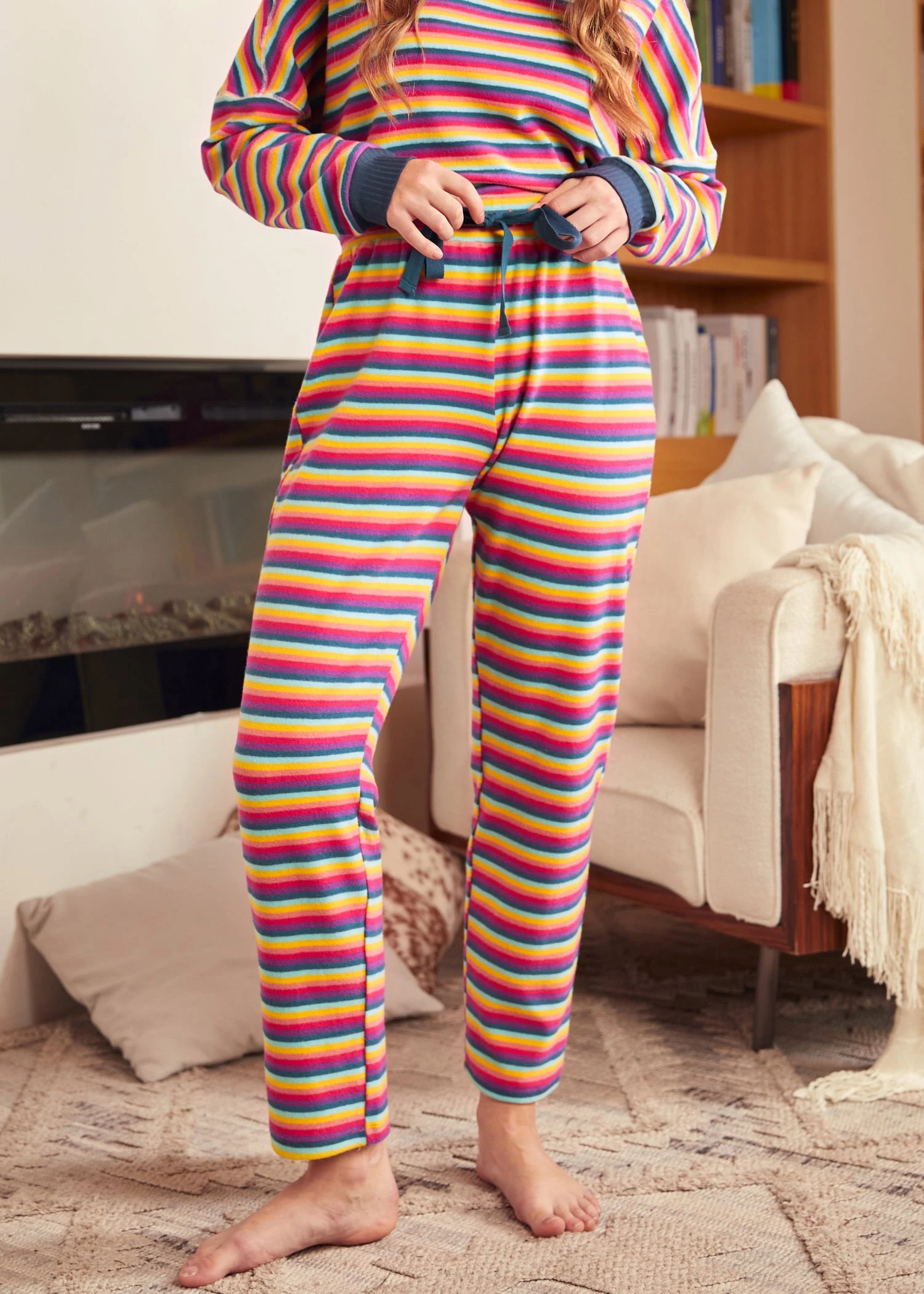 Embark on a voyage to relaxation with the Colorburst Cozy Straight-Leg Pants. Designed for those who refuse to choose between style and comfort, these trousers feature a stunning chorus of vertical multi-colored stripes that evoke the energy of a sunlit market. Whether you’re lounging at home or heading out for a casual brunch, the soft-touch knit fabric ensures you stay cozy all day long.